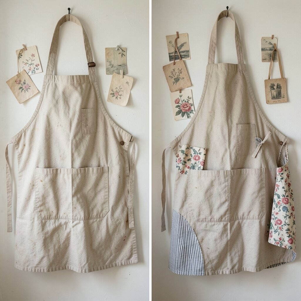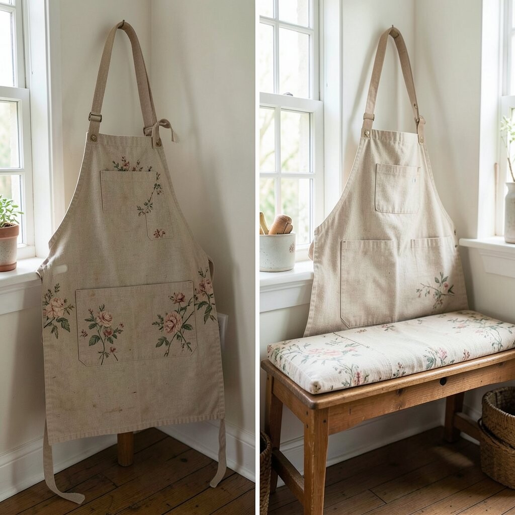 It’s a creative way to reuse aprons and adds a cozy, personalized touch to your sleeping space. Match the aprons to your bedroom’s color scheme for a cohesive look.