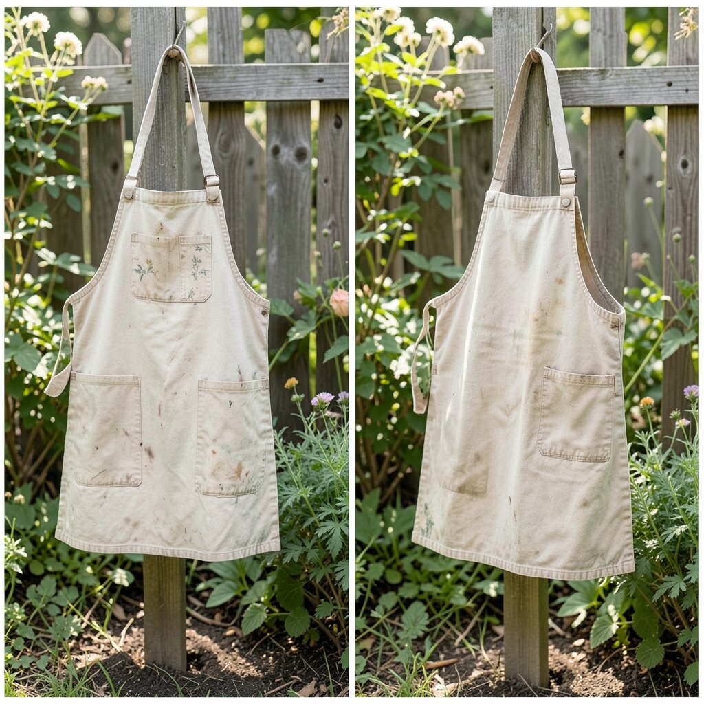Hang aprons on a garden fence for a quirky outdoor display. This adds color and personality to your garden space.