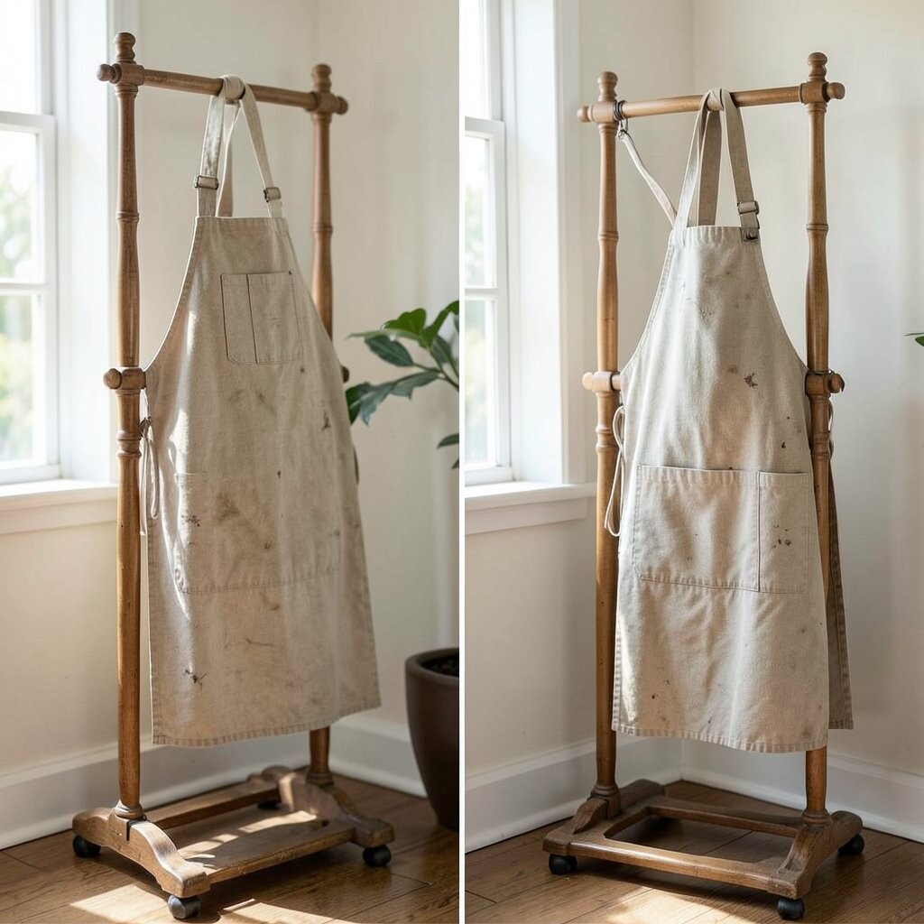A display rack keeps your aprons organized while showcasing them as a part of your home decor. Choose a rack that matches your interior style for a seamless look.
