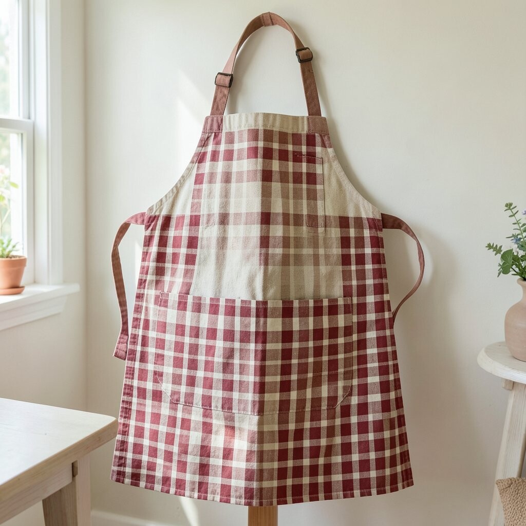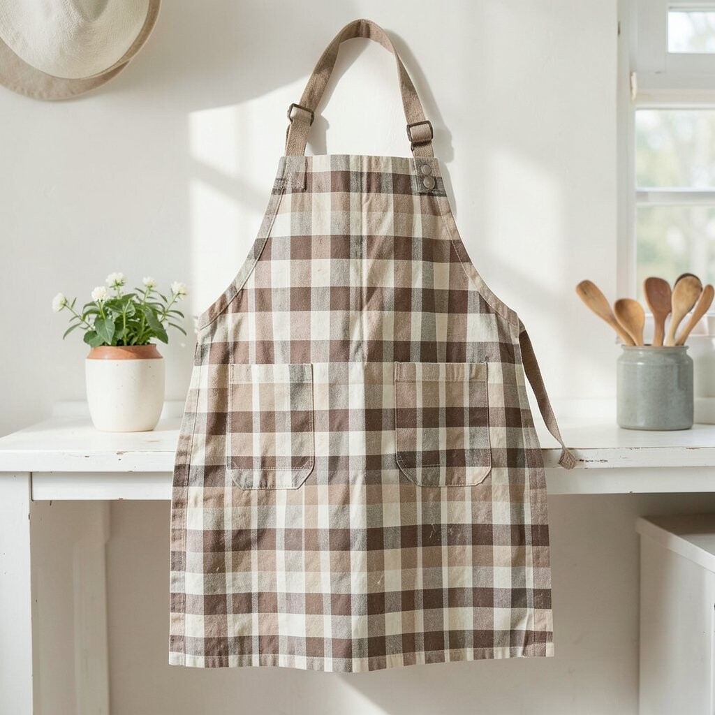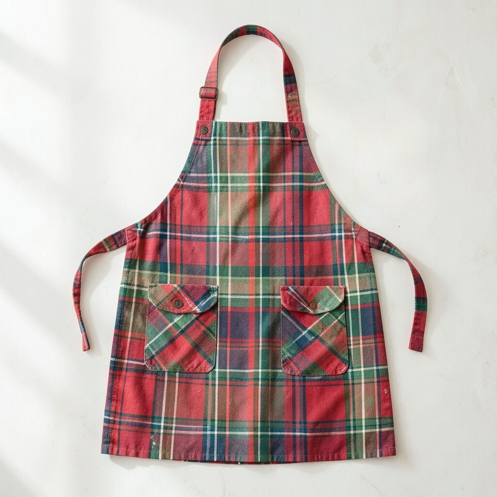 Plaids can add a cozy, warm feeling to any space. A plaid apron is perfect for fall or winter cooking. It’s like wearing a cozy blanket while you bake.