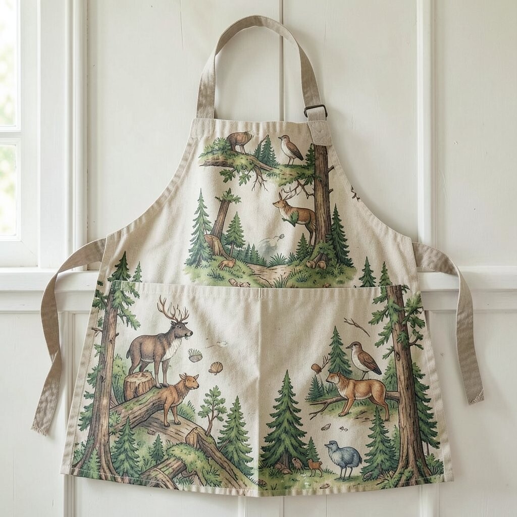 Bring the outdoors in with a woodland-themed apron. Think of foxes, owls, and trees. It’s perfect for nature lovers who want to feel connected to the earth.