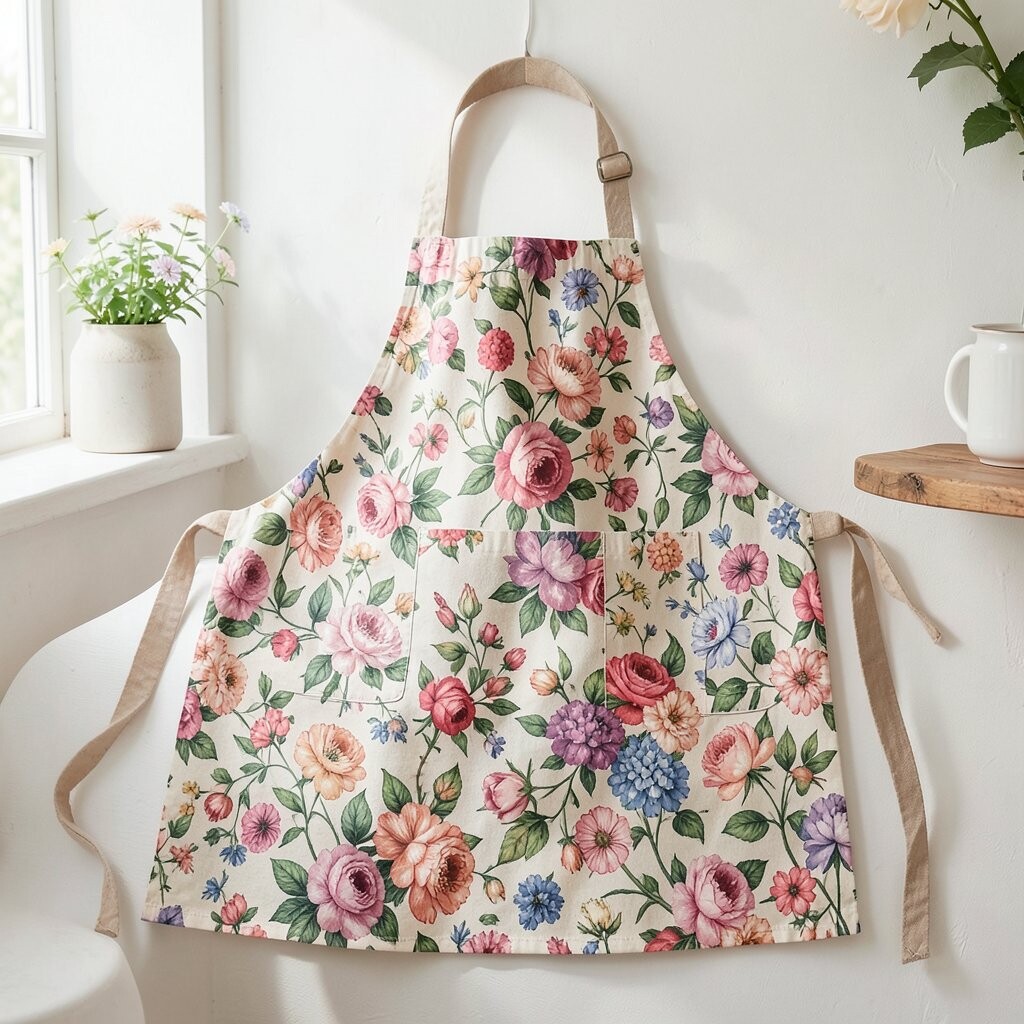 Floral patterns can bring a garden’s beauty indoors. A floral apron is perfect for adding a fresh, springtime feel. It’s like wearing a bouquet while you cook!