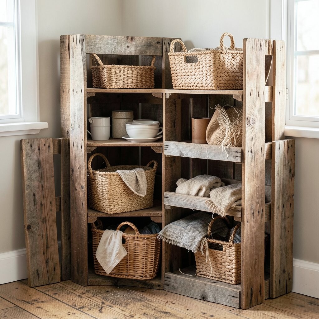 Pallets offer a sturdy and eco-friendly storage solution. You can paint or stain them to match your decor. They’re often available for free or at a low cost.
