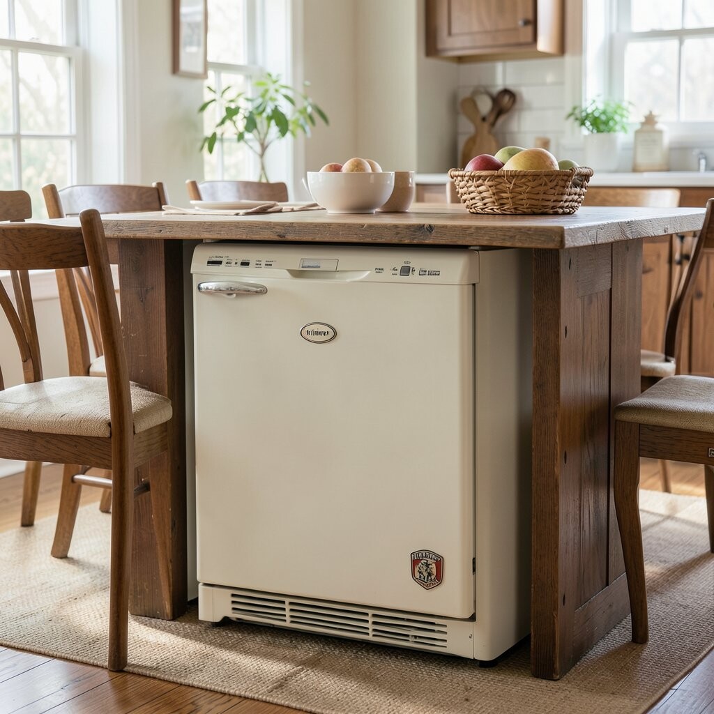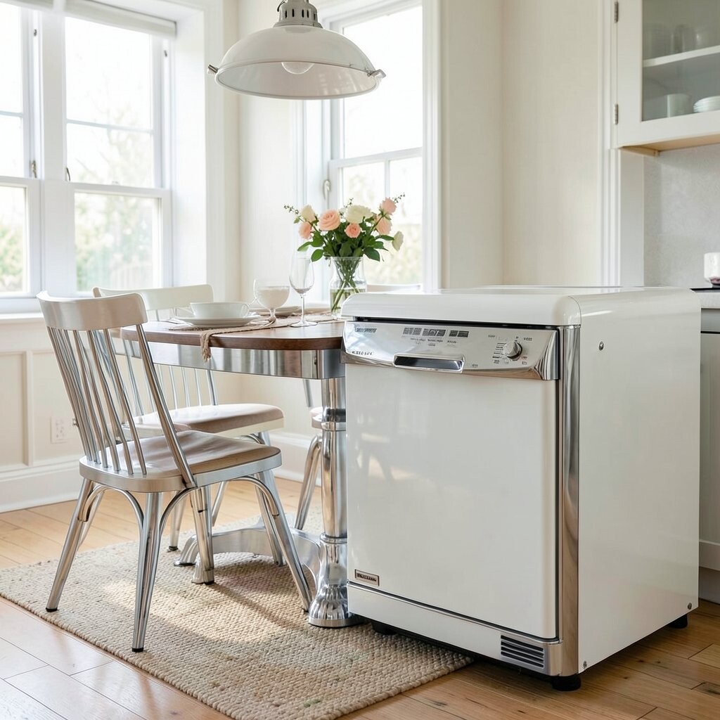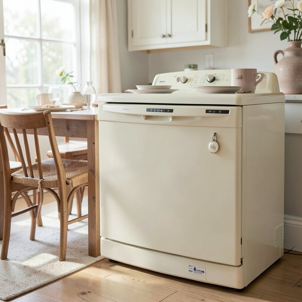 A dishwasher with rounded edges and a soft old shape feels very special. It brings back the sweet look of early home design.