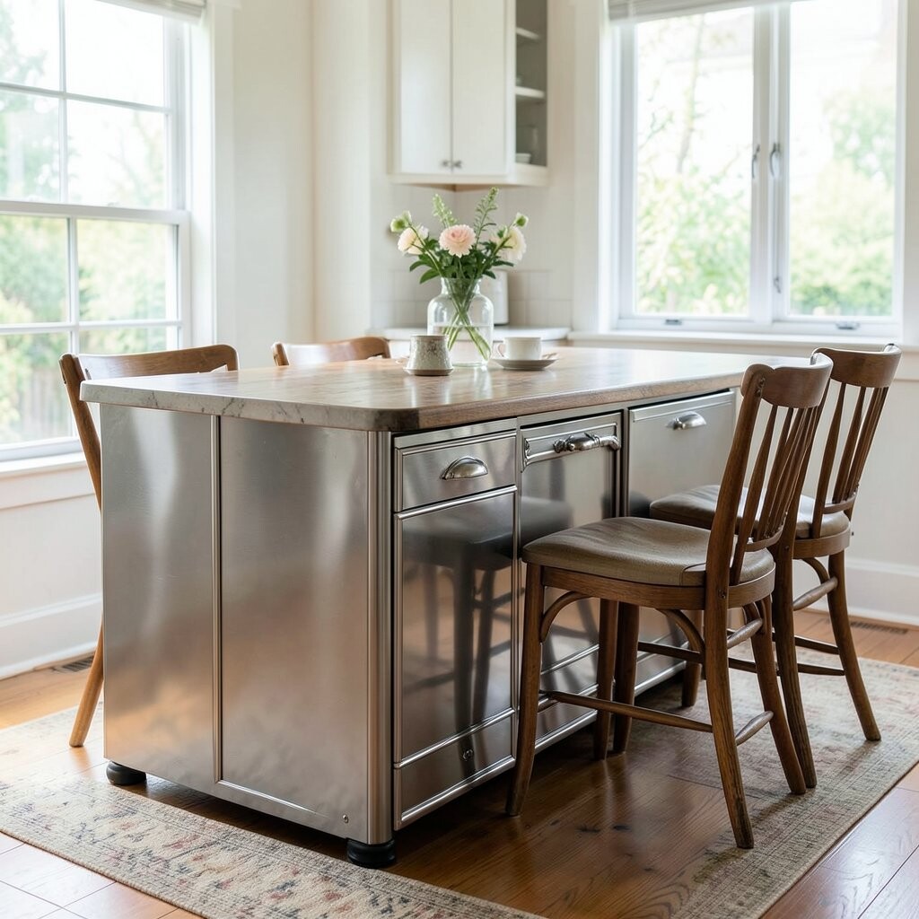 Stainless steel can still feel vintage when the shape has rounded corners and old-school details. It gives a clean look with a touch of retro charm.