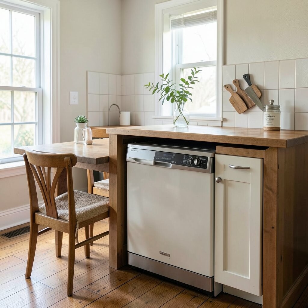 Surrounding a vintage dishwasher with tiny tiles can make it feel built-in and special. The tiles add texture and a handmade touch.
