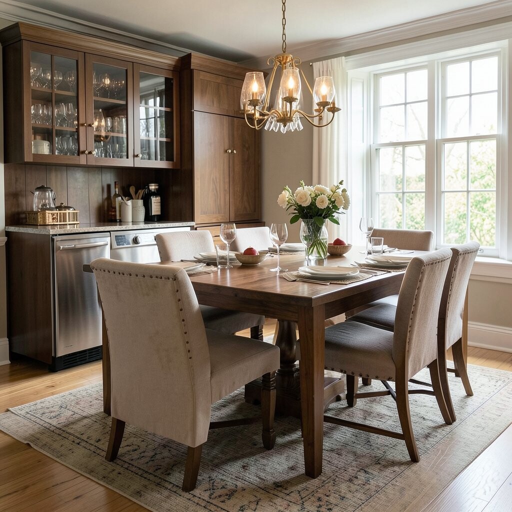 This style feels calm and friendly, which makes the dining room seem more welcoming. It works well in cozy homes and gives you that classic, lived-in feel.