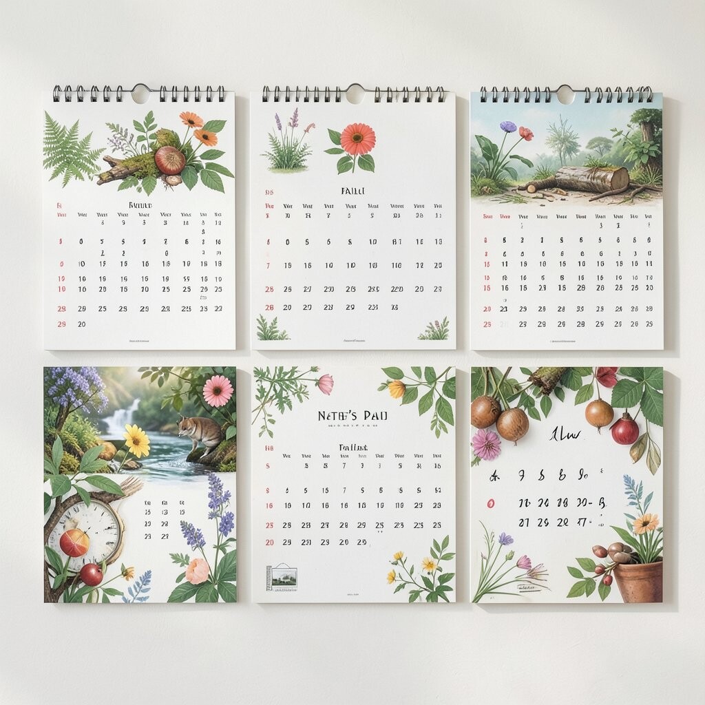 Bring the outdoors in with a calendar filled with lush greenery and vibrant flowers. Each month features a different plant or bloom, creating a mini-garden on your wall. The soothing green hues are perfect for stress relief.