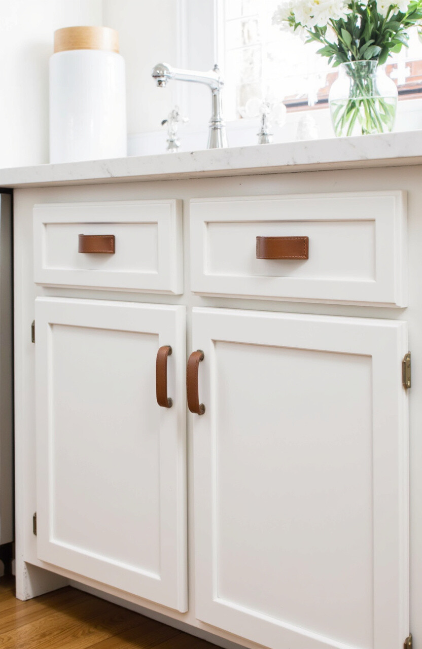 Swap out your old drawer pulls for leather ones. These add a soft, warm feel and a touch of elegance to any kitchen.