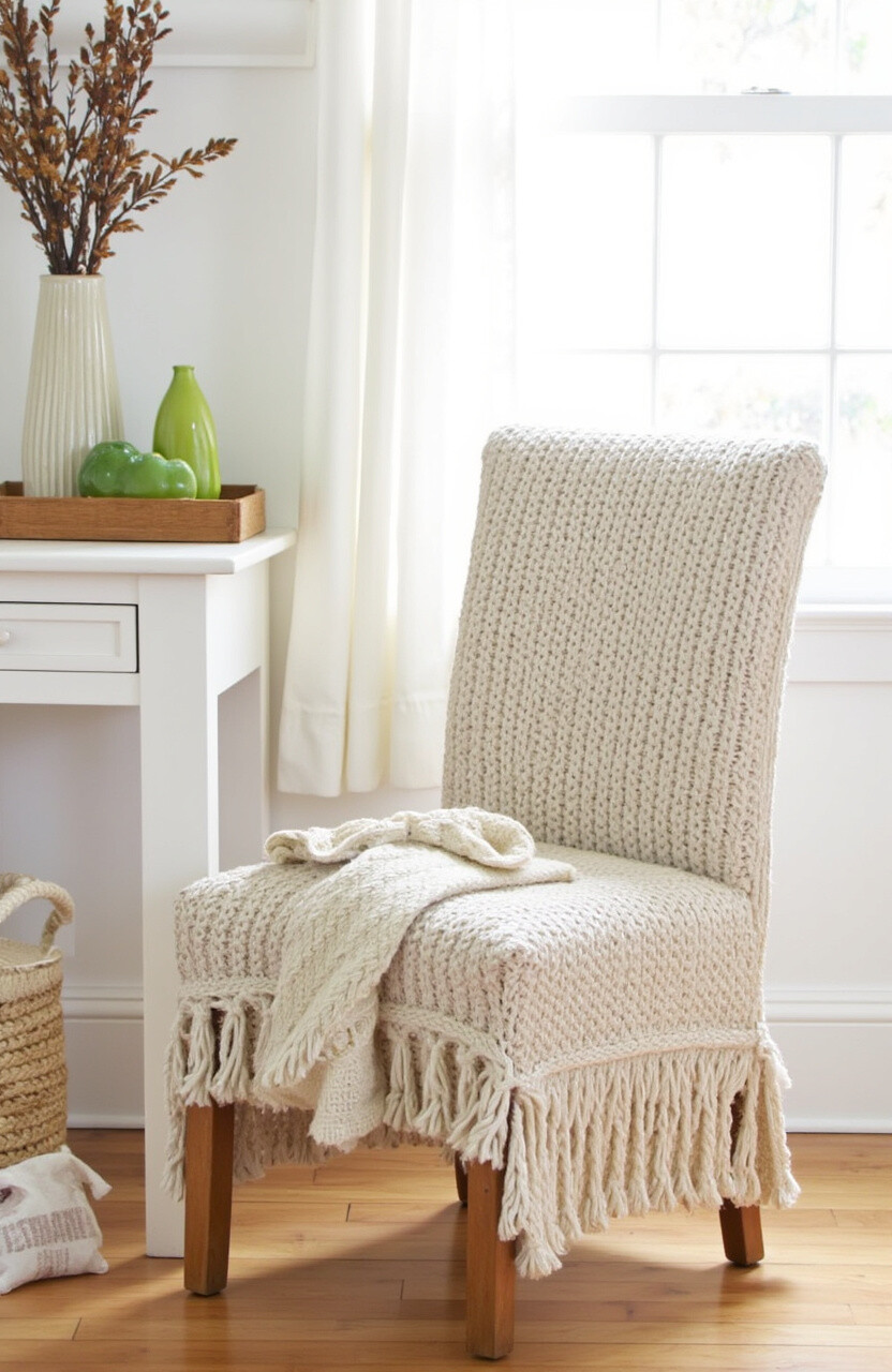 Add warmth to your seating with knitted chair covers. These soft covers can make your chairs look inviting and feel comfy.
