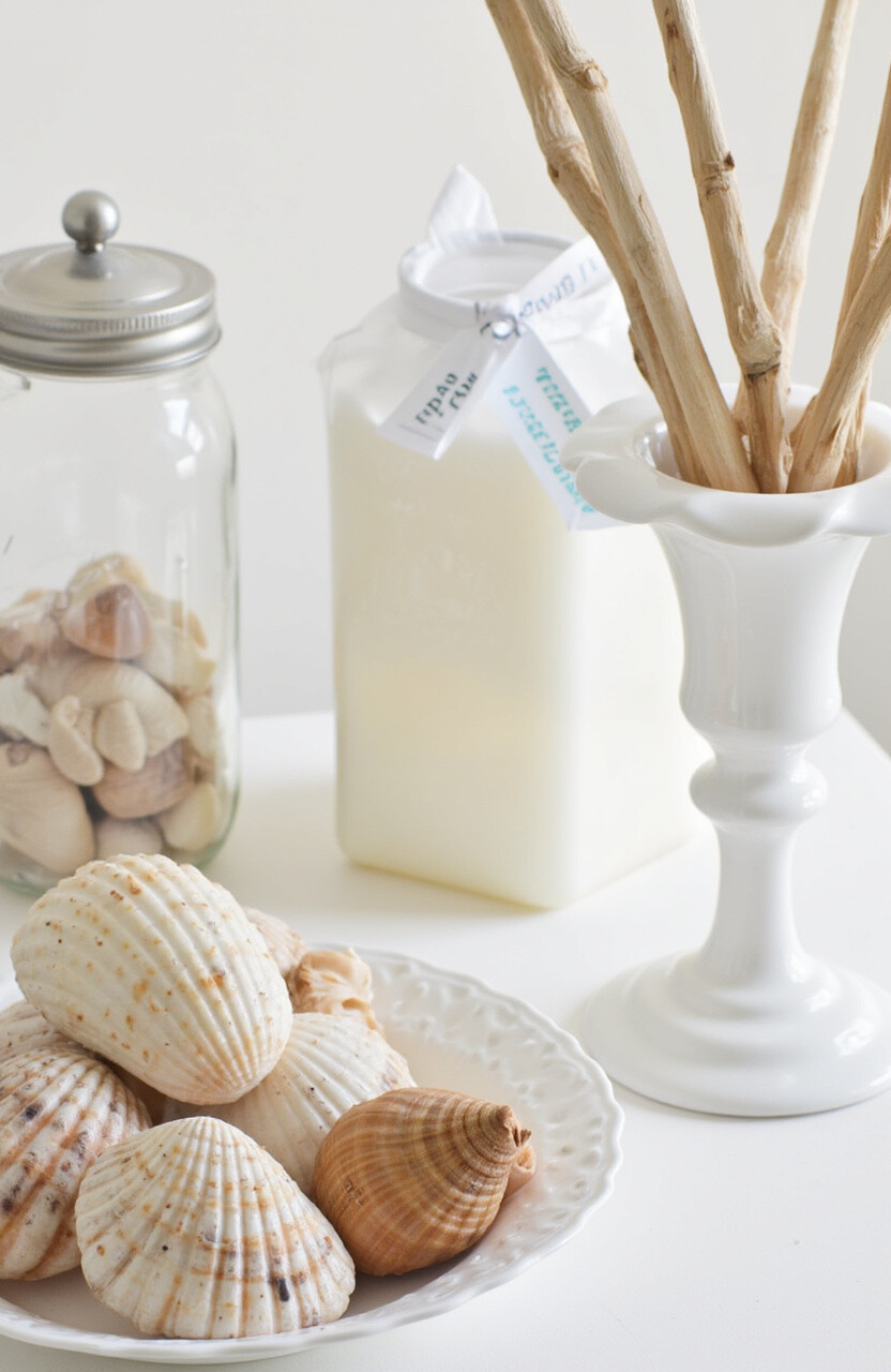 Seashells add a tactile element and remind you of the beach. They’re an affordable way to bring the ocean to your kitchen.