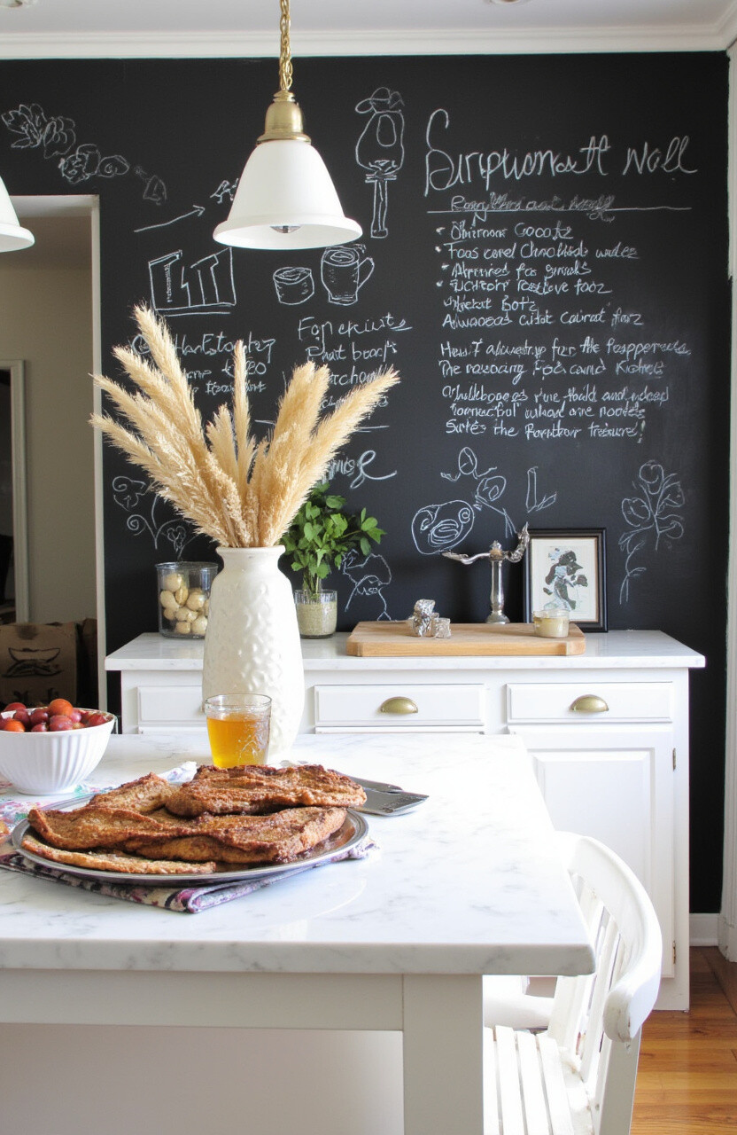 Chalkboard walls add texture and functionality. Use them for doodles, menus, or as a message board.