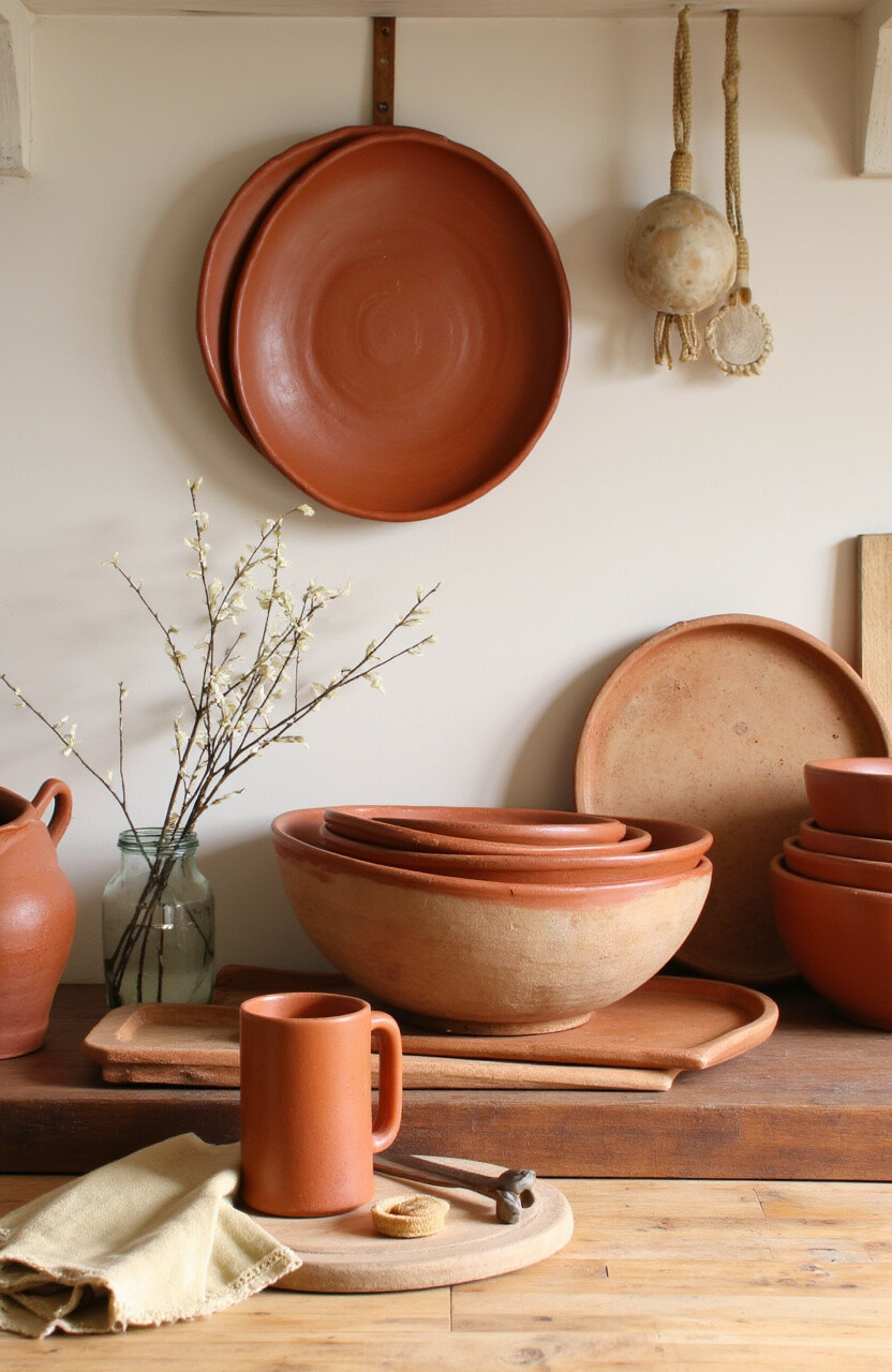 Clay pottery has a rich, tactile feel that infuses warmth into your kitchen. Use clay bowls and mugs for a handmade touch that feels cozy and inviting.