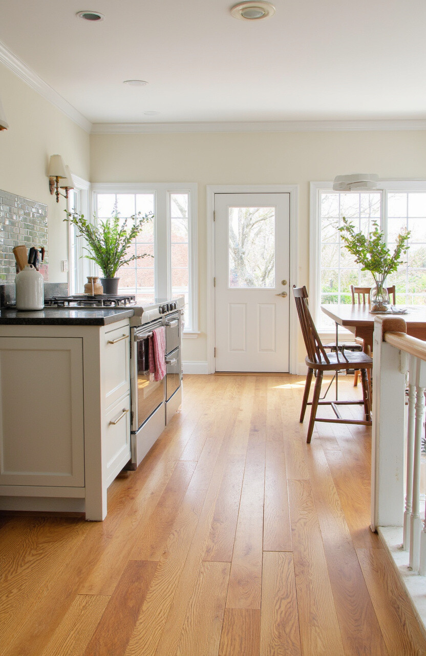Hardwood floors in the kitchen are both classic and timeless. They’re like the little black dress of kitchen design, always in style.