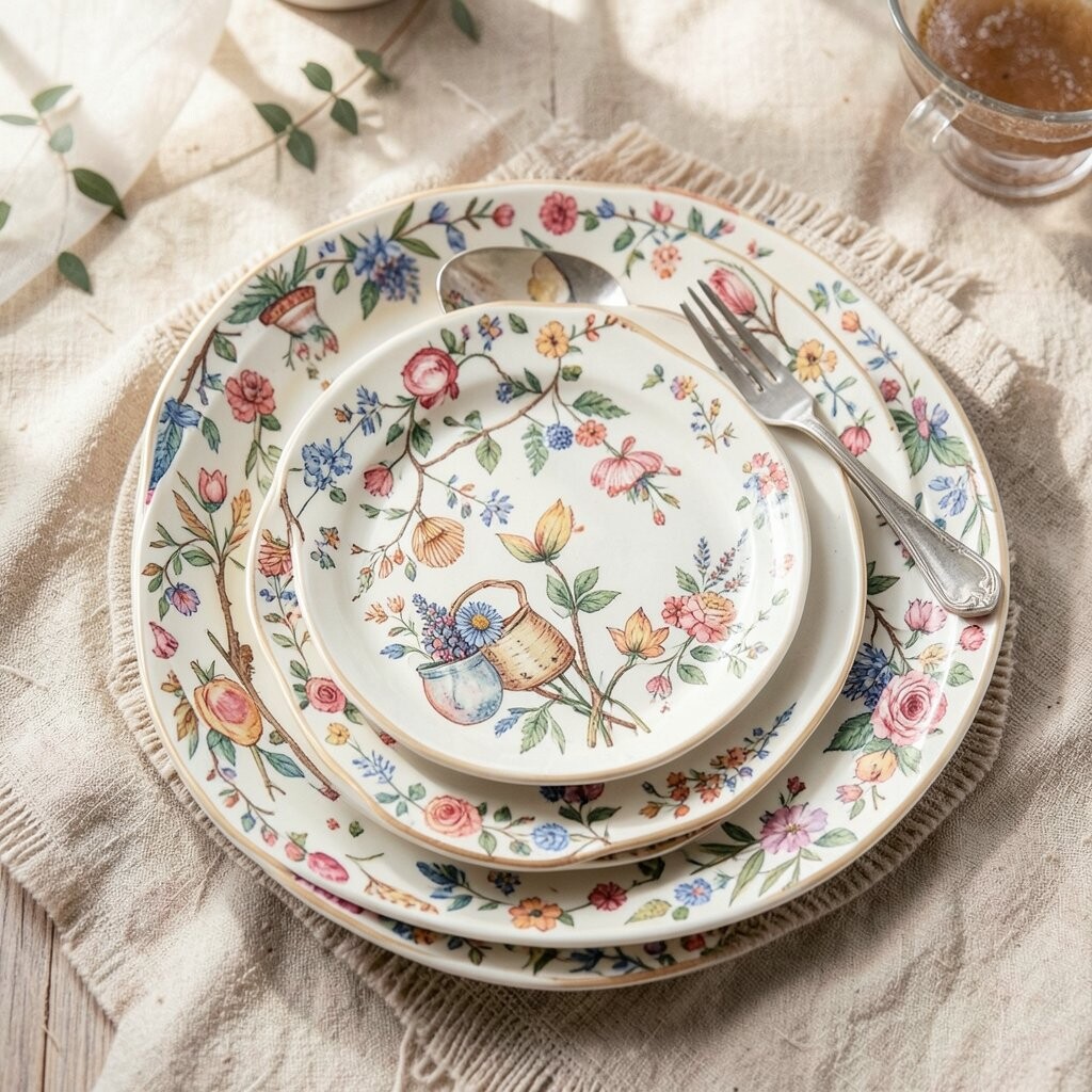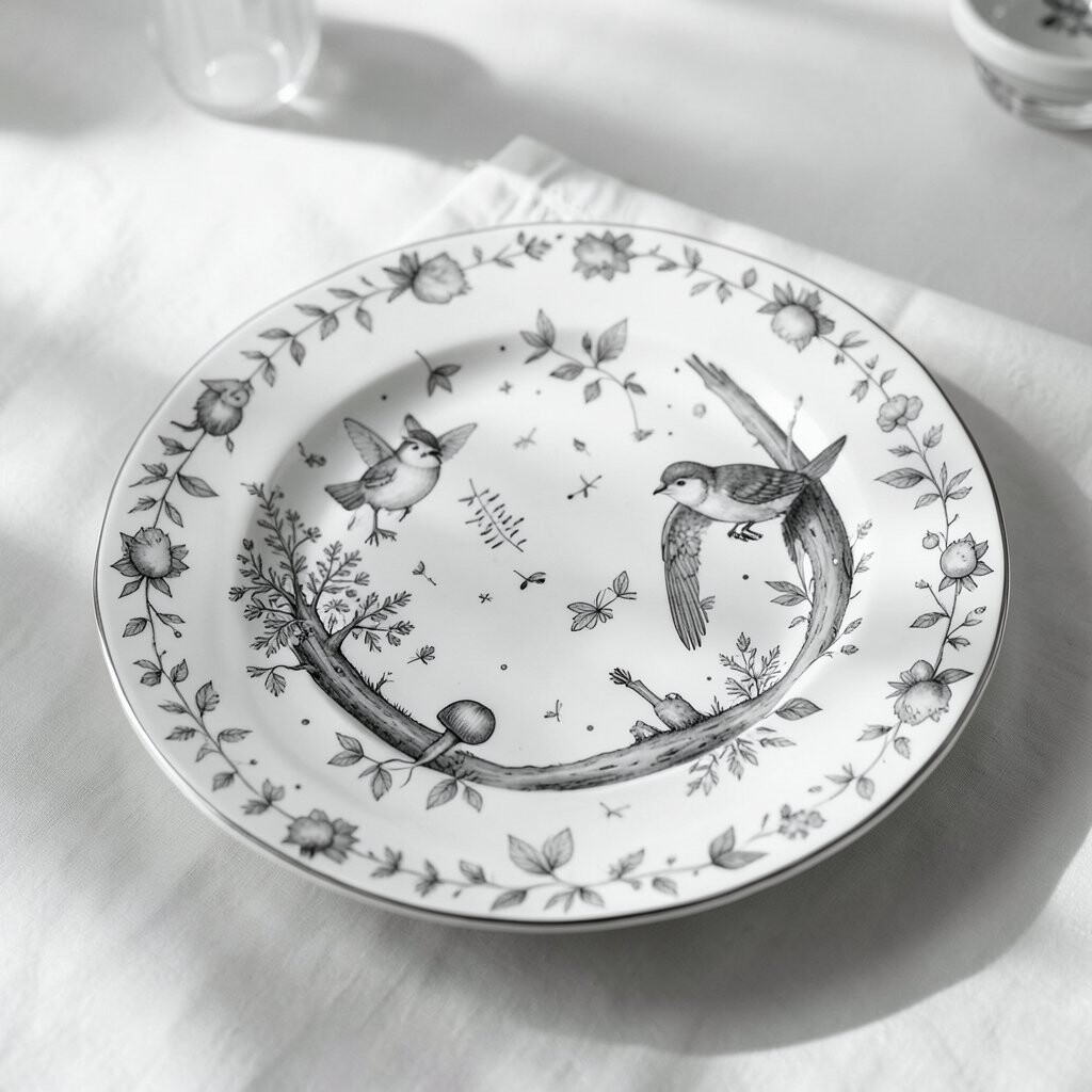 Bring a touch of magic to your table with plates that depict enchanted gardens. Think fairies, secret pathways, and blooming flowers.