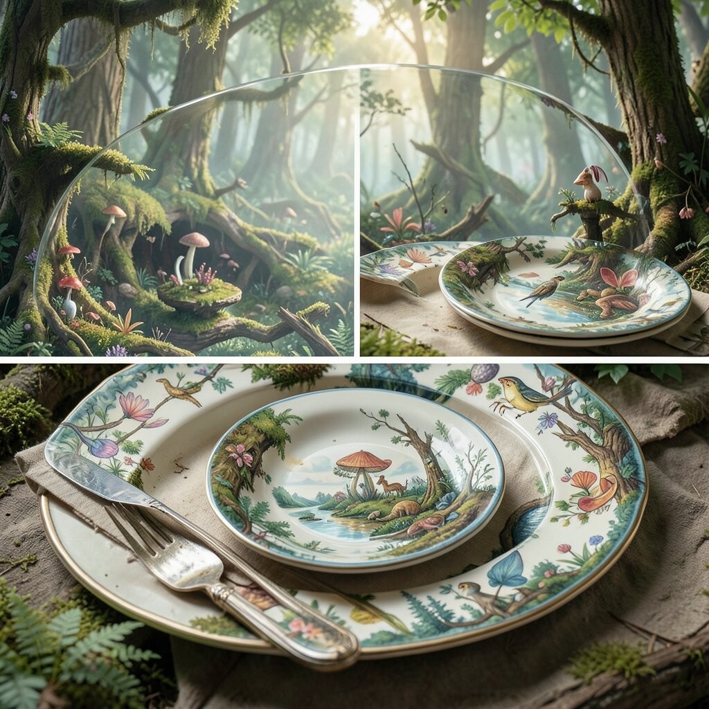 Immerse yourself in the magic of a fantasy forest with plates that depict enchanted woods and mythical creatures.