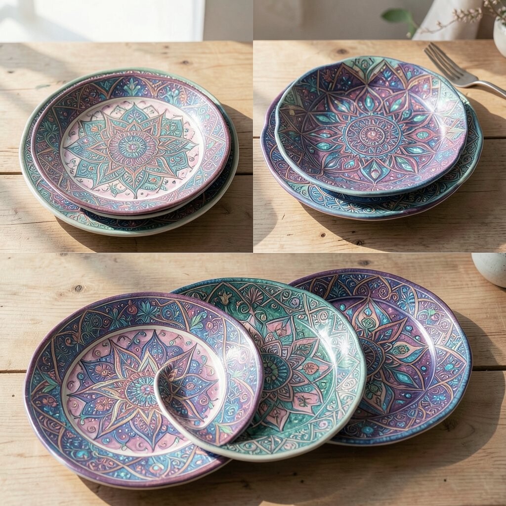 Let your plates be a work of art with mandala designs. These intricate patterns can add a spiritual and calming influence to your meals.