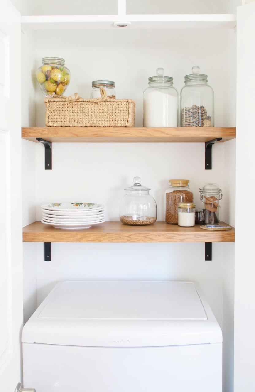 Floating shelves can add extra storage without taking up too much space. They’re perfect for displaying your prettiest jars and baskets.