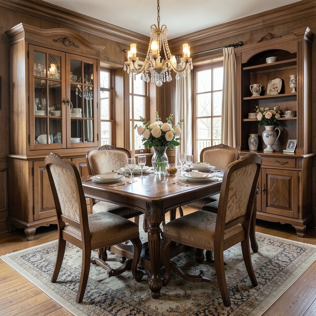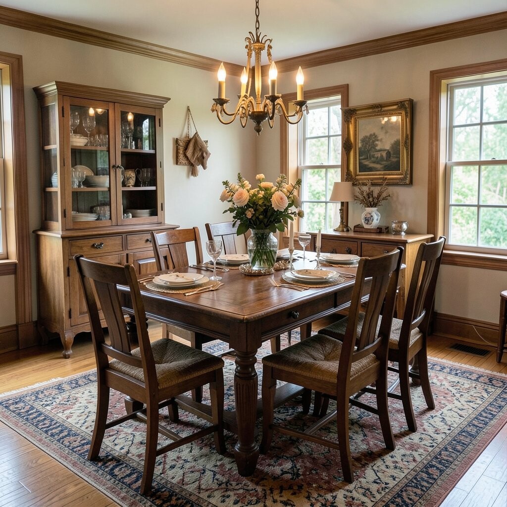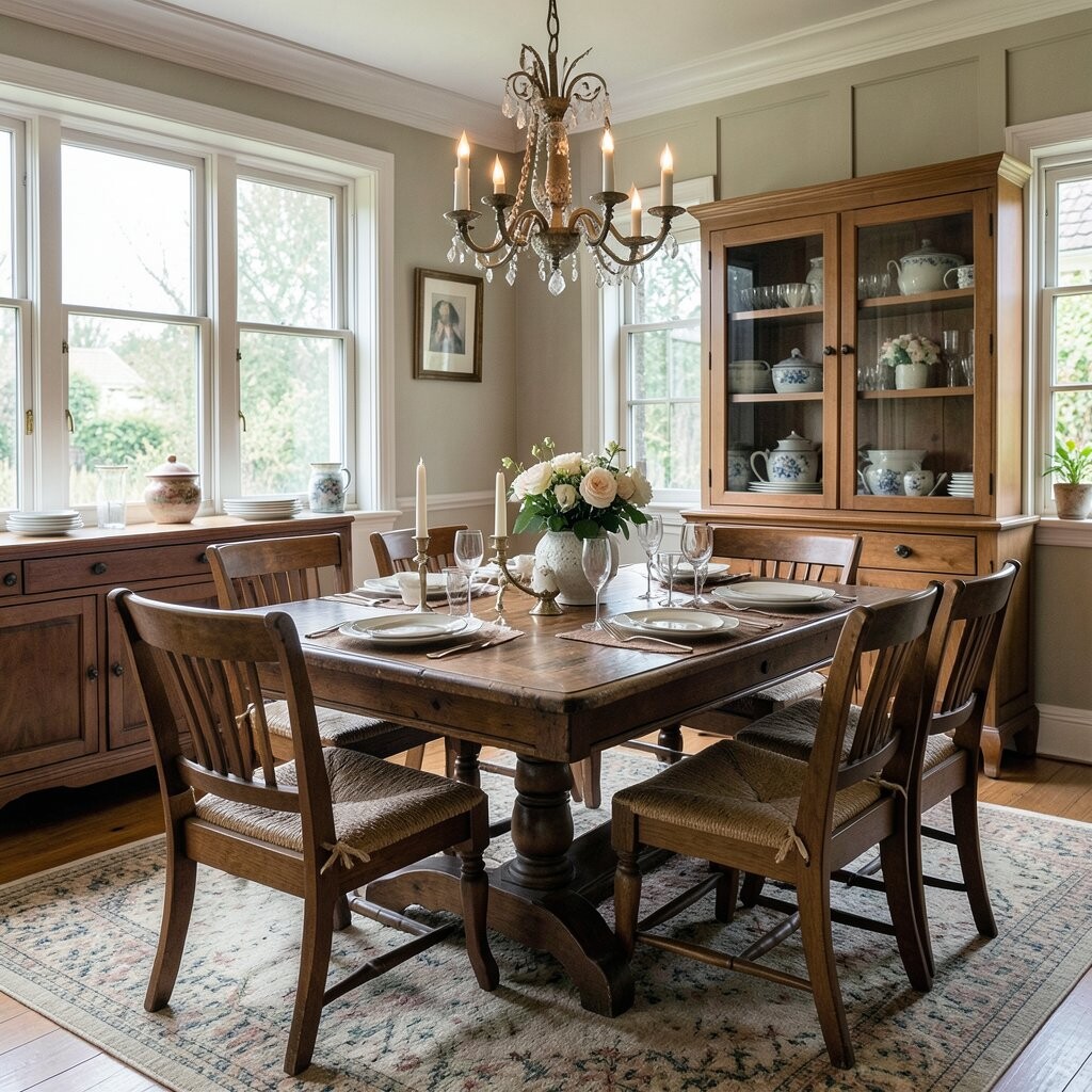 This style is all about timeless elegance and quality craftsmanship. Add vintage silverware and classic textiles for added sophistication. While it can be an investment, the lasting beauty and durability make it worthwhile.